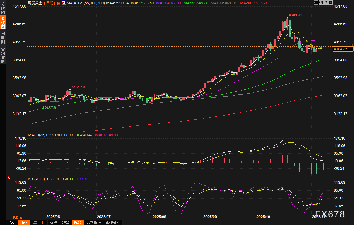 exness官网——周一(11月10日)亚市早盘,现货黄金守住上周五涨势,一度涨至4010美元/盎司上方,较上周五收盘价4001.27美元/盎司上涨约0.2%。上周五金价上涨0.6%,成功收复4000整数关口。市场人士指出,美元指数的意外走软成为首要推手,上周五美元下跌0.15%至近一周低位,这使得以美元计价的黄金对持有其他货币的投资者而言变得更加便宜,吸引了大量海外买盘涌入。同时,美国政府关门的不确定性如阴霾般笼罩市场,显著提升了黄金的避险属性,而华尔街股指即将录得大幅周度跌幅,进一步放大了这一效应。科技股为主的纳斯达克指数上周五录得七个月来最大单周跌幅,投资者对人工智能股票涨势可持续性的担忧情绪升温,推动资金从风险资产重新转向黄金这一传统避险天堂。